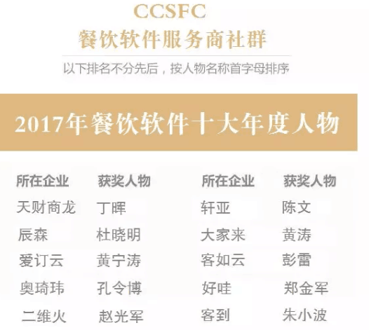 經(jīng)過三個多月的籌備和短信接口對接,餐飲軟件行業(yè)的”奧斯卡“、極具含金量的“2017年餐飲軟件十大年度人物”榜單震撼揭曉!